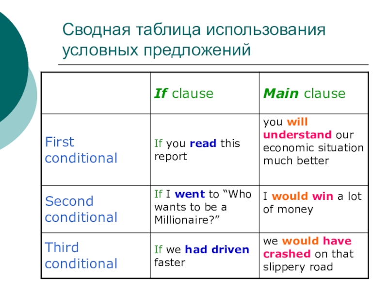 First conditionalsИспользуются для обозначения реальных действий в будущемe.g. If you read this report you will understand our