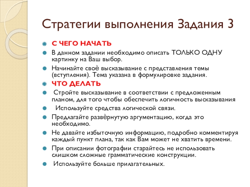 При описании фотографии старайтесь не использовать слишком сложные грамматические конструкции.