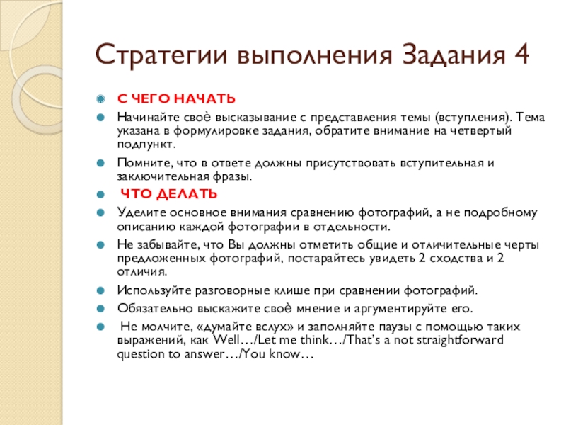 Не давайте избыточную информацию, подробно комментируя каждый пункт плана, так как Вам может не хватить времени.