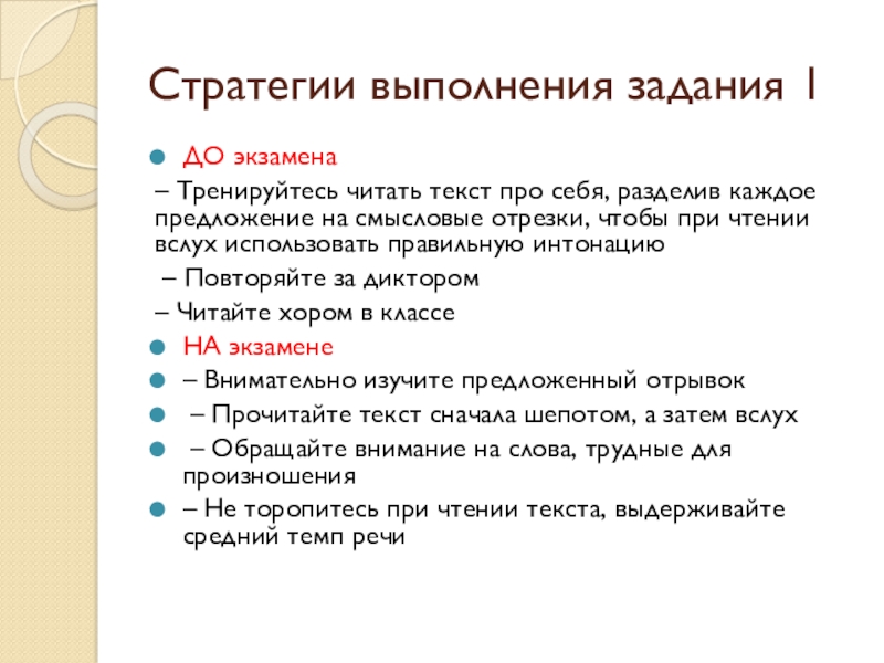 – Не торопитесь при чтении текста, выдерживайте средний темп речи