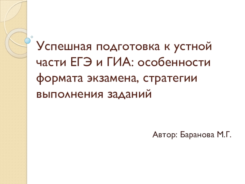Слайд 1Успешная подготовка к устной части ЕГЭ и ГИА: особенности формата экзамена,