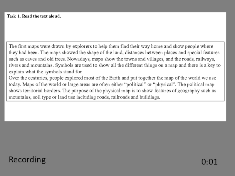 The first maps were drawn by explorers to help them find their way home and show people where they had been. The maps showed the shape of the land, distances between places and special features such as caves and old trees. Nowadays, maps show the towns and villages, and the roads, railways, rivers and mountains. Symbols are used to show all the different things on a map and there is a key to explain what the symbols stand for.