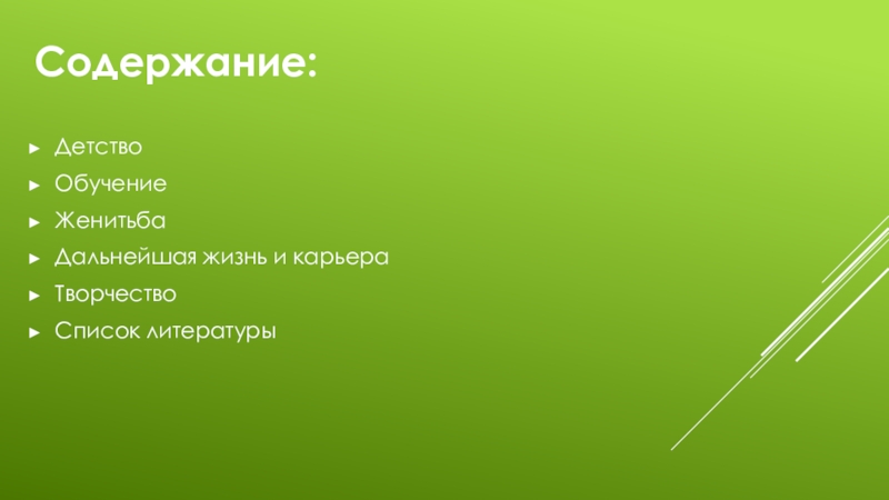 Содержание:ДетствоОбучениеЖенитьбаДальнейшая жизнь и карьераТворчествоСписок литературы
