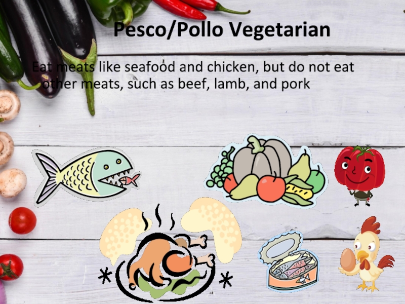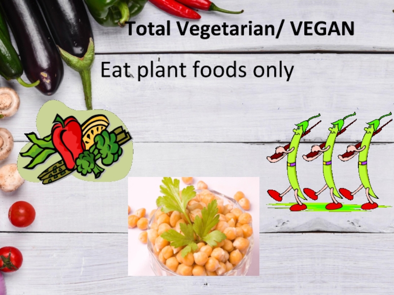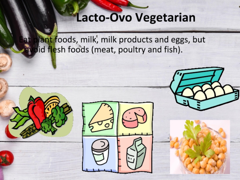 Eat plant foods, milk, milk products and eggs, but avoid flesh foods (meat, poultry and fish).