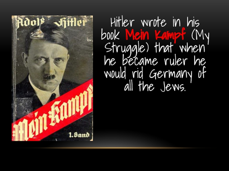 Слайд 7Hitler wrote in his book Mein Kampf (My Struggle) that when