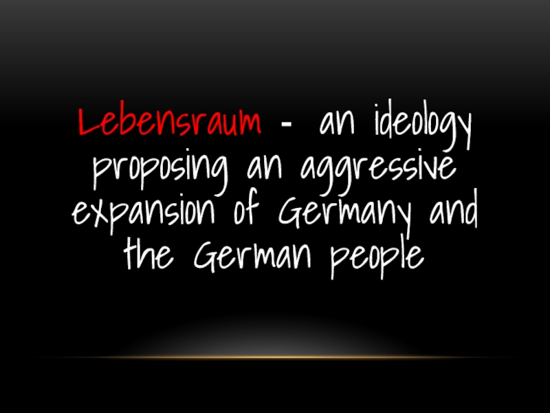 Слайд 4Lebensraum - an ideology proposing an aggressive expansion of Germany and