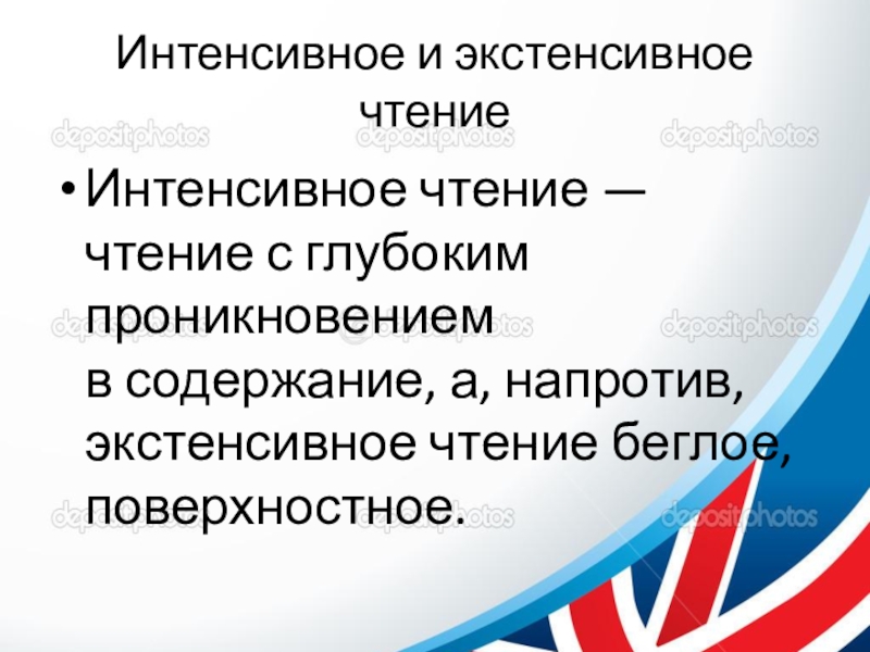 Интенсивное чтение — чтение с глубоким проникновением в содержание, а, напротив,