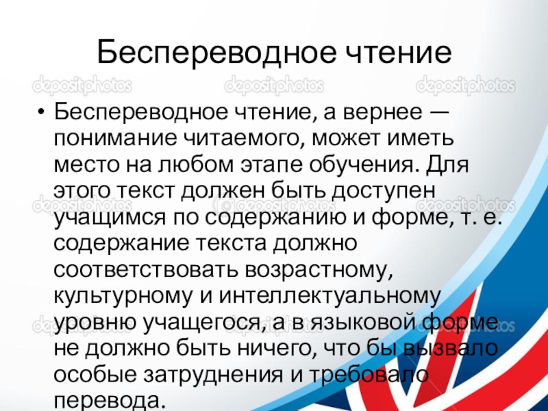 Слайд 5Беспереводное чтение