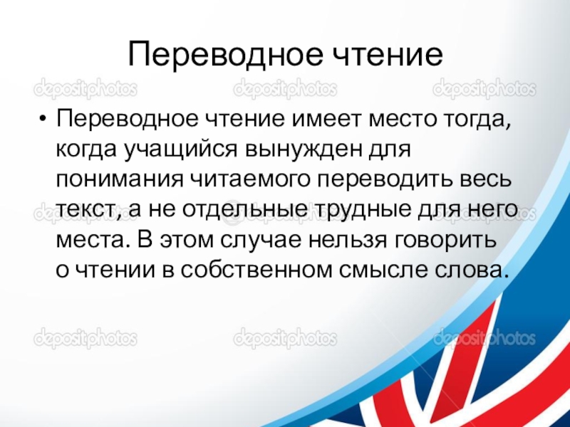 Переводное чтение имеет место тогда, когда учащийся вынужден для понимания
