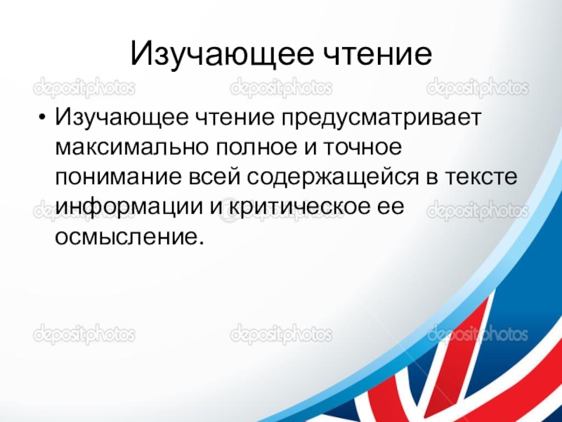 Слайд 12Изучающее чтение