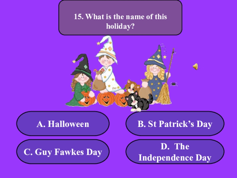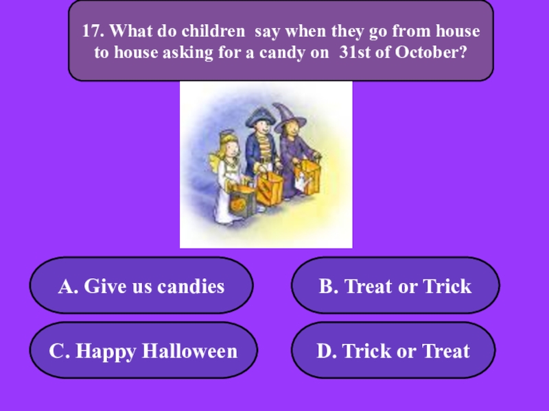 17. What do children say when they go from house to house asking for a candy on 31st of October?