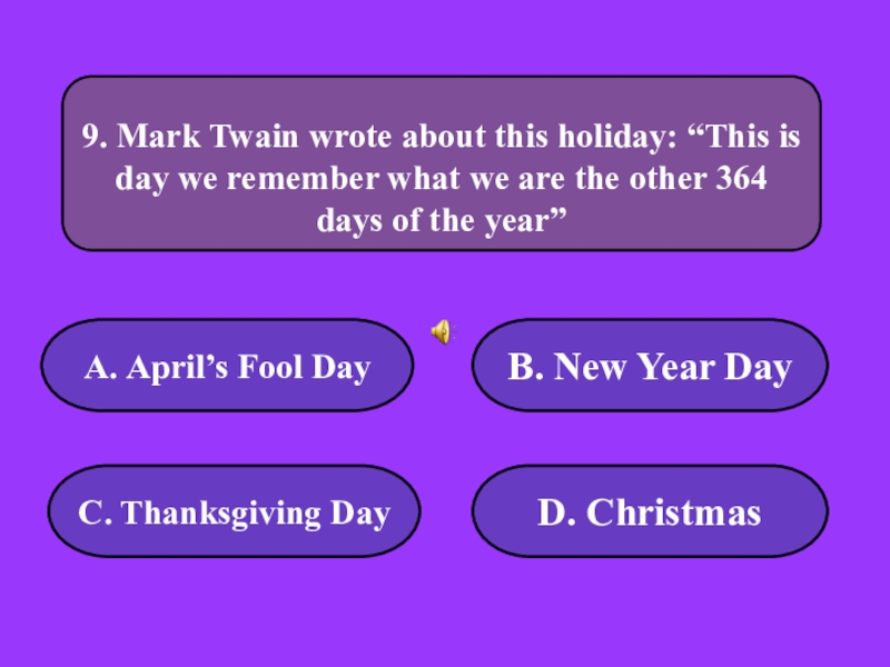 9. Mark Twain wrote about this holiday: “This is day we remember what we are the other 364 days of the year”