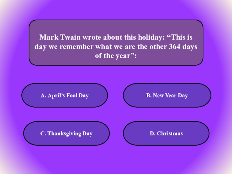 Mark Twain wrote about this holiday: “This is day we remember what we are the other 364 days of the year”: