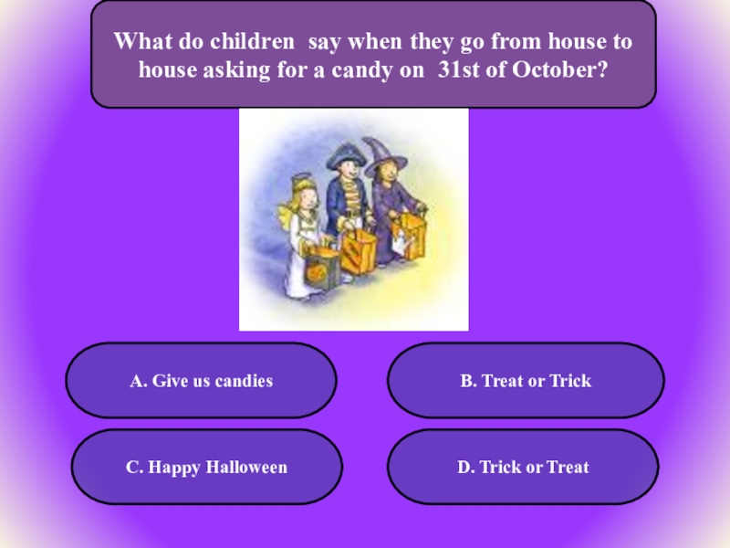 What do children say when they go from house to house asking for a candy on 31st of October?
