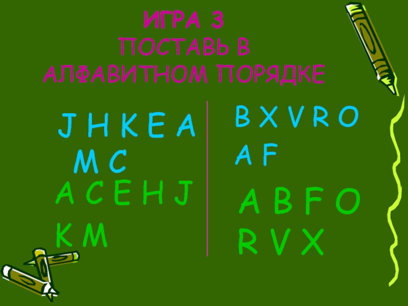 Слайд 11ИГРА 3 ПОСТАВЬ В АЛФАВИТНОМ ПОРЯДКЕ