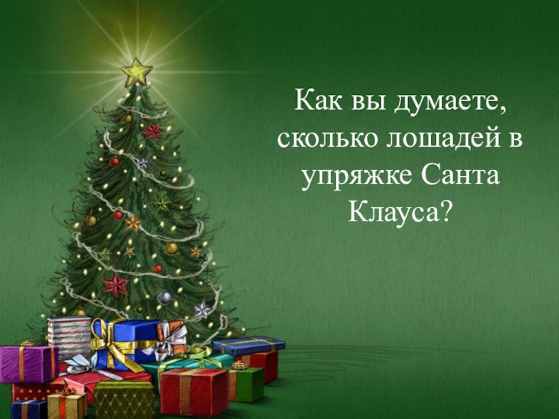 Слайд 32Как вы думаете, сколько лошадей в упряжке Санта Клауса?