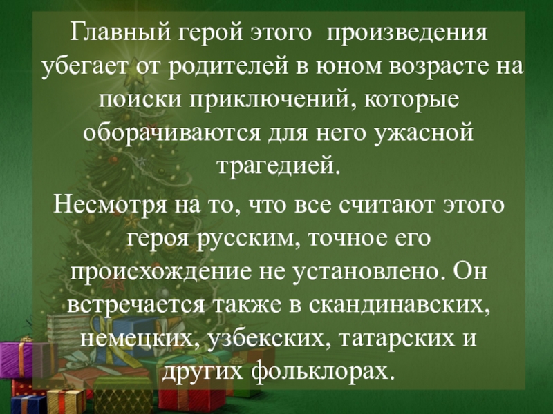 Слайд 26Главный герой этого произведения убегает от родителей в юном возрасте на