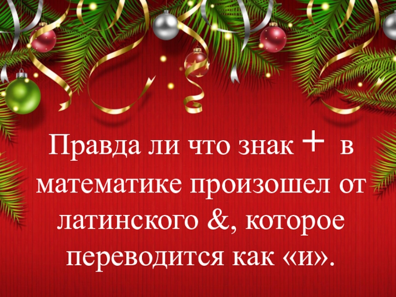 Слайд 8Правда ли что знак + в математике произошел от латинского &,