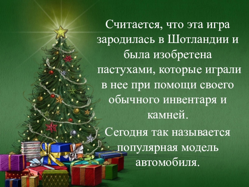 Слайд 27Считается, что эта игра зародилась в Шотландии и была изобретена пастухами,