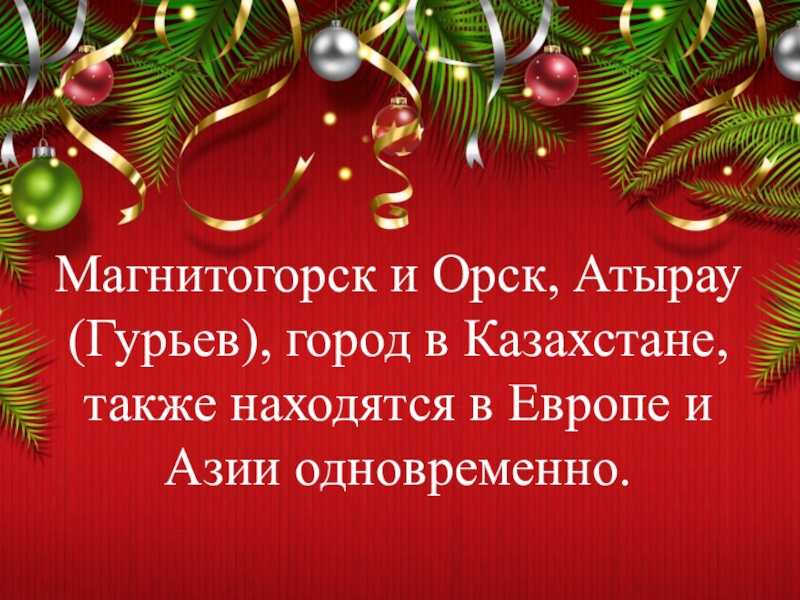 Слайд 15Магнитогорск и Орск, Атырау (Гурьев), город в Казахстане, также находятся в