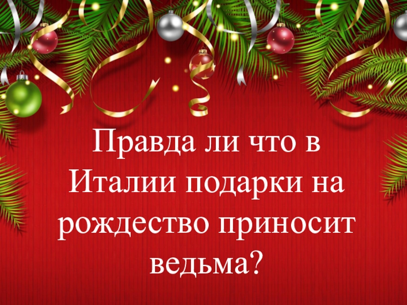 Слайд 6Правда ли что в Италии подарки на рождество приносит ведьма?
