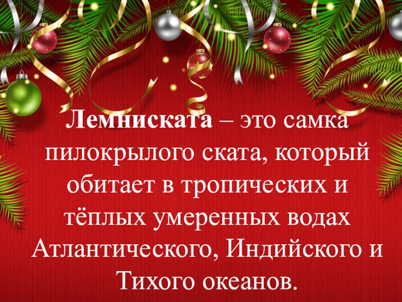 Слайд 11Лемниската – это самка пилокрылого ската, который обитает в тропических и
