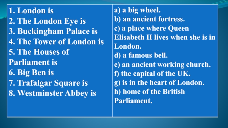Презентация, доклад на тему Викторина по английскому язку на тему Лондон