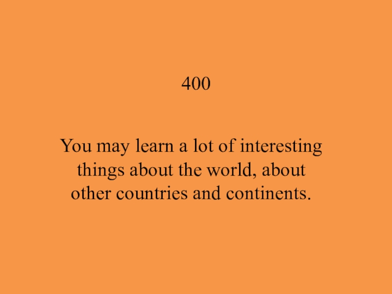 400You may learn a lot of interesting things about the world, about other countries and continents.