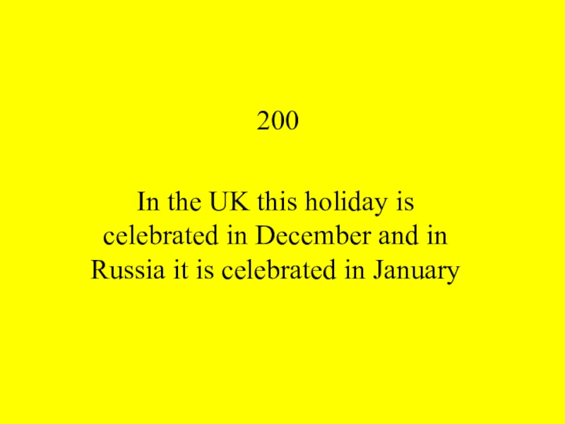 200In the UK this holiday is celebrated in December and in Russia it is celebrated in January