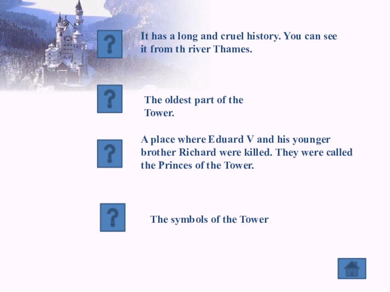 A place where Eduard V and his younger brother Richard were killed. They were called the Princes of the Tower.