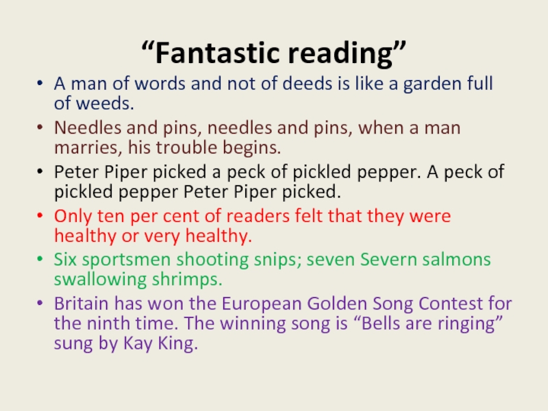 “Fantastic reading”A man of words and not of deeds is like a garden full of weeds.Needles and