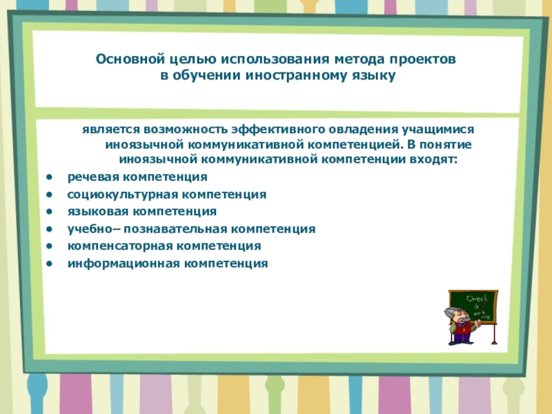 эффективного овладения учащимися иноязычной коммуникативной компетенцией. В понятие иноязычной коммуникативной компетенции входят: