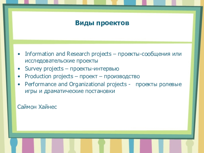 Information and Research projects – проекты-сообщения или исследовательские проекты