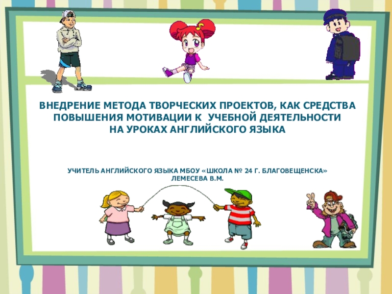 Слайд 1ВНЕДРЕНИЕ МЕТОДА ТВОРЧЕСКИХ ПРОЕКТОВ, КАК СРЕДСТВА ПОВЫШЕНИЯ МОТИВАЦИИ К УЧЕБНОЙ ДЕЯТЕЛЬНОСТИ