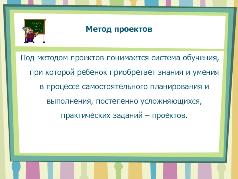 Под методом проектов понимается система обучения, при которой ребенок приобретает