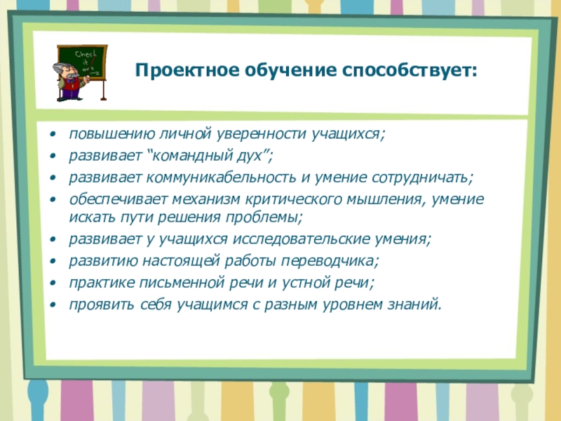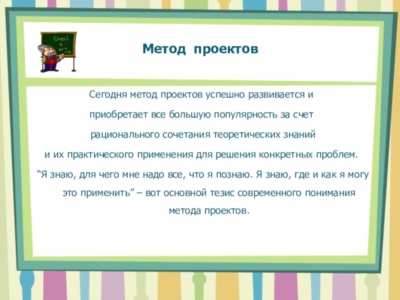 “Я знаю, для чего мне надо все, что я познаю. Я знаю, где и как я могу это применить” – вот основной тезис современного понимания метода проектов.