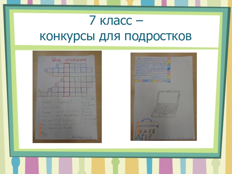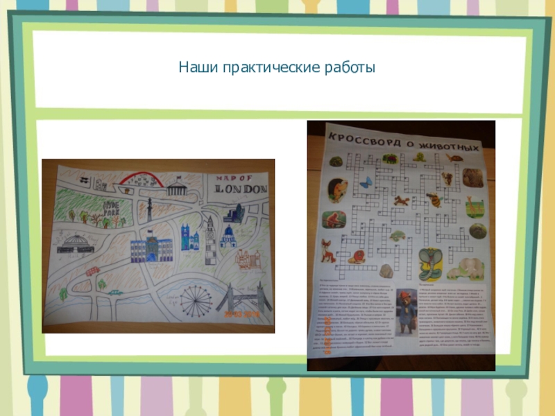 Практикуем следующие виды заданий: презентации, презентации – игры, доклады, красочно оформленные сочинения и письма друзьям, кроссворды и рисунки с подписями изображенных предметов и т.д.