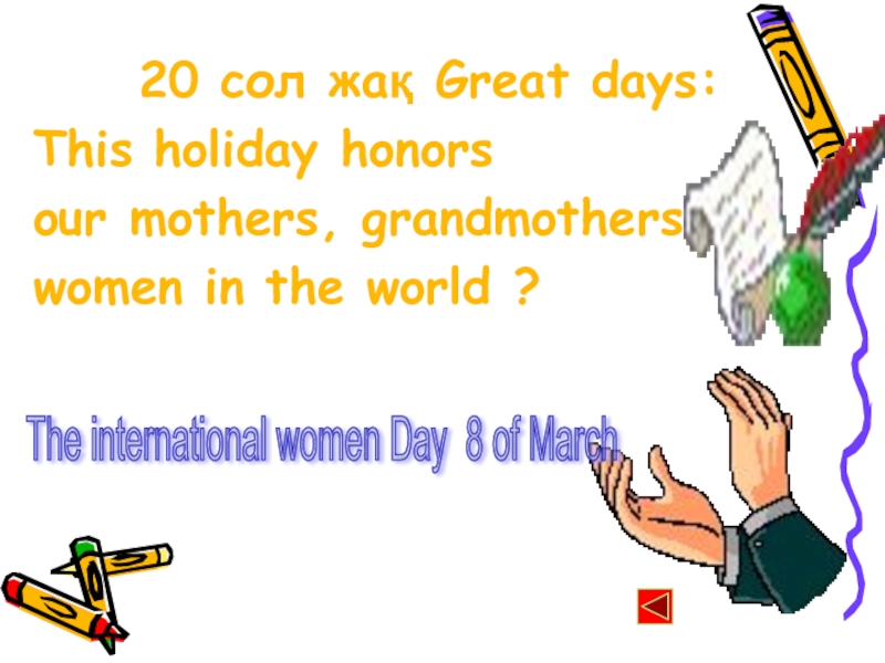 Это сайт презентаций, где можно хранить и обмениваться своими презентациями, докладами, проектами, шаблонами в формате PowerPoint с другими пользователями. Мы помогаем школьникам, студентам, учителям, преподавателям хранить и обмениваться учебными материалами.