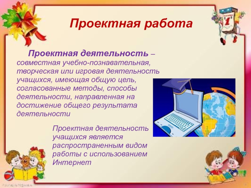 Проектная деятельность учащихся является распространенным видом работы с использованием Интернет