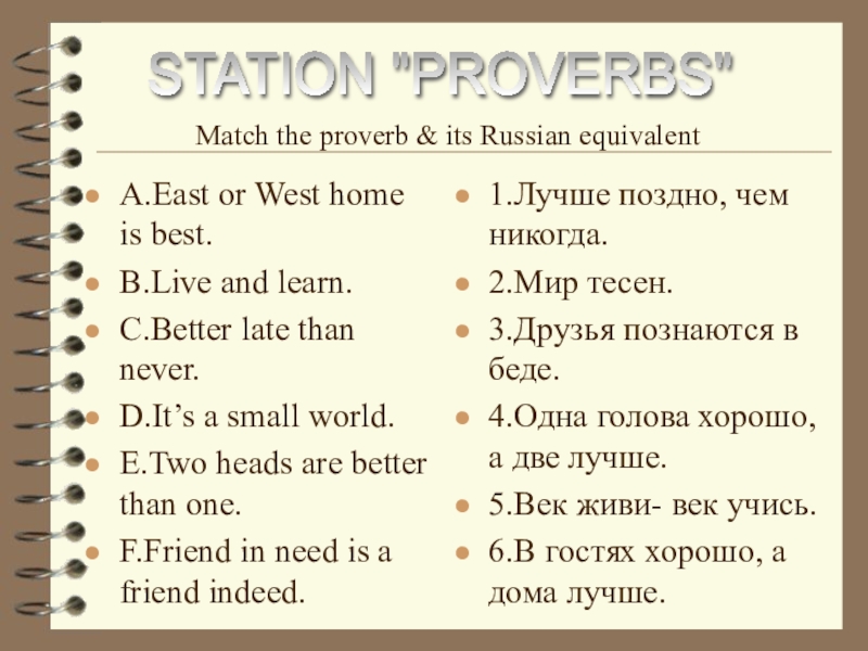 Match the proverb & its Russian equivalent