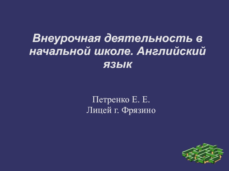 Внеурочная деятельность в начальной школе. Английский языкПетренко Е. Е.Лицей г. Фрязино