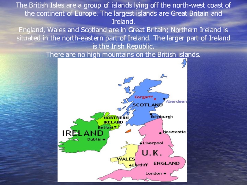 north-west coast of the continent of Europe. The largest islands are Great Britain and Ireland.