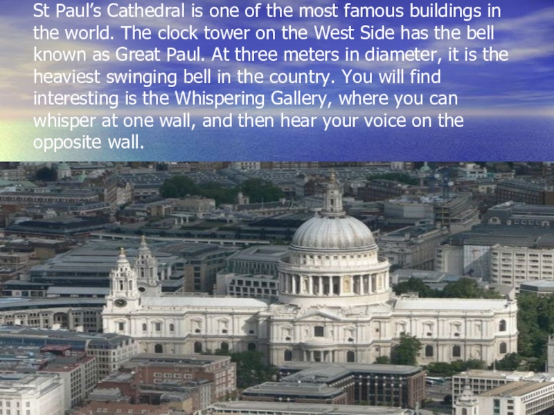 Слайд 7St Paul’s Cathedral is one of the most famous buildings in
