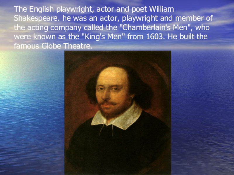 Слайд 20The English playwright, actor and poet William Shakespeare. he was an