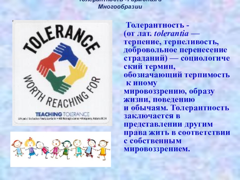 Слайд 2Толерантность - Гармония в Многообразии