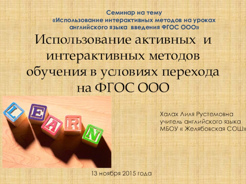 «Использование интерактивных методов на уроках английского языка введения ФГОС ООО»