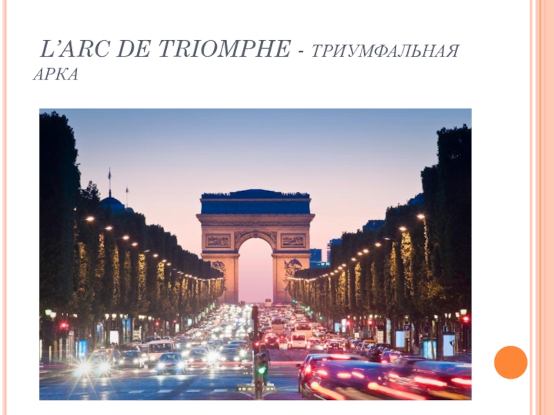 Слайд 19 L’ARC DE TRIOMPHE - ТРИУМФАЛЬНАЯ АРКА