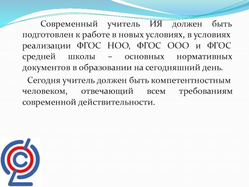 Слайд 3 Современный учитель ИЯ должен быть подготовлен к работе в