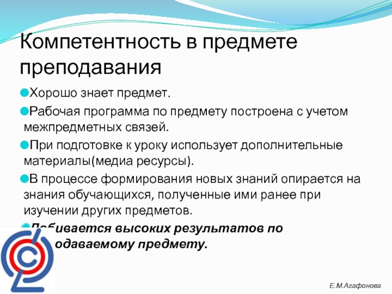 Слайд 8Компетентность в предмете преподавания