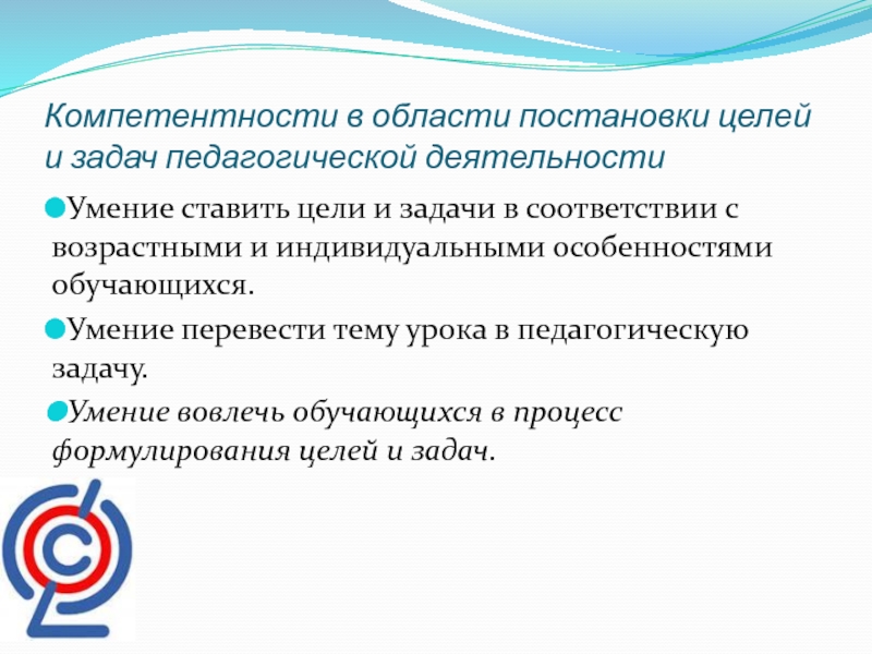 Слайд 6Компетентности в области постановки целей и задач педагогической деятельности